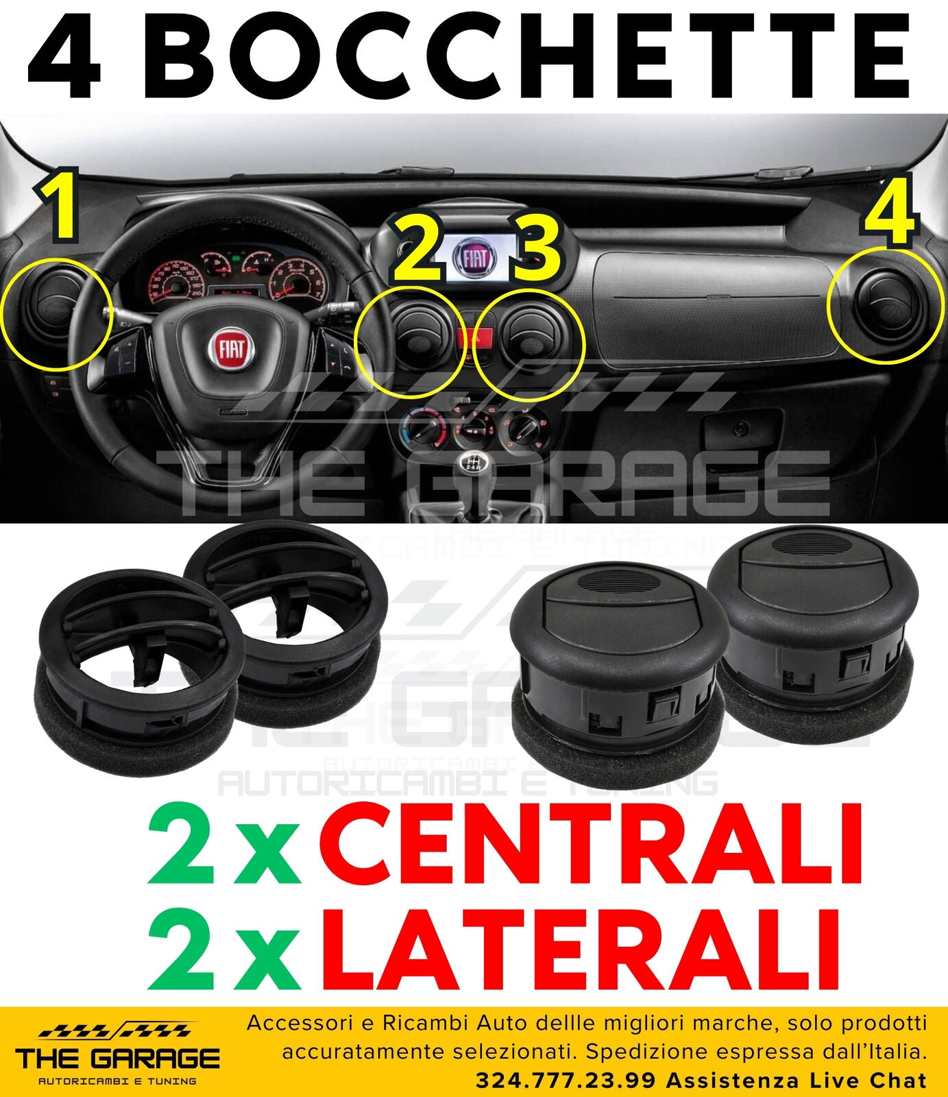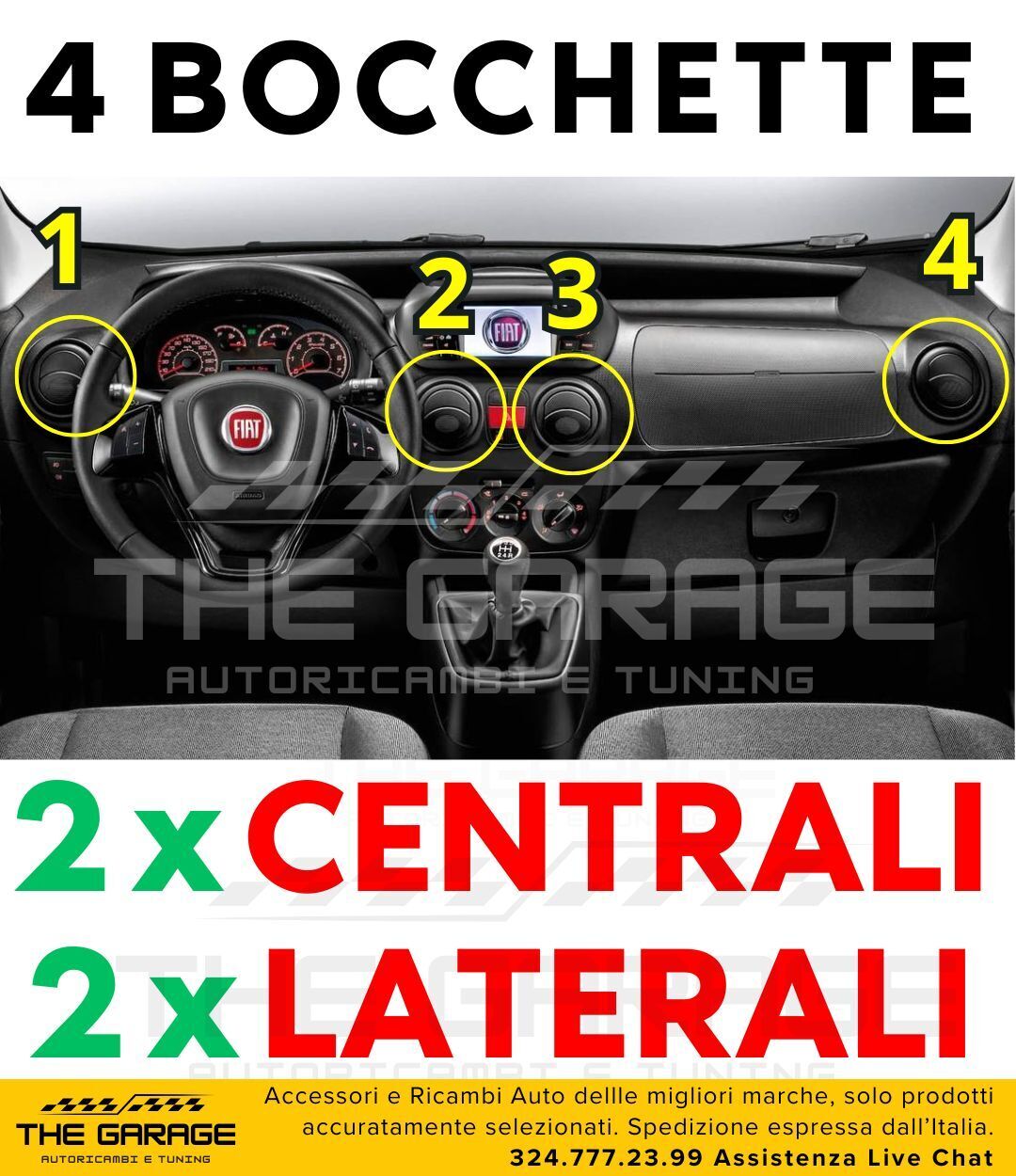 Set 4x Completo 2 LATERALI + 2 CENTRALI Bocchette Aria Fiat Fiorino Doblo Nemo