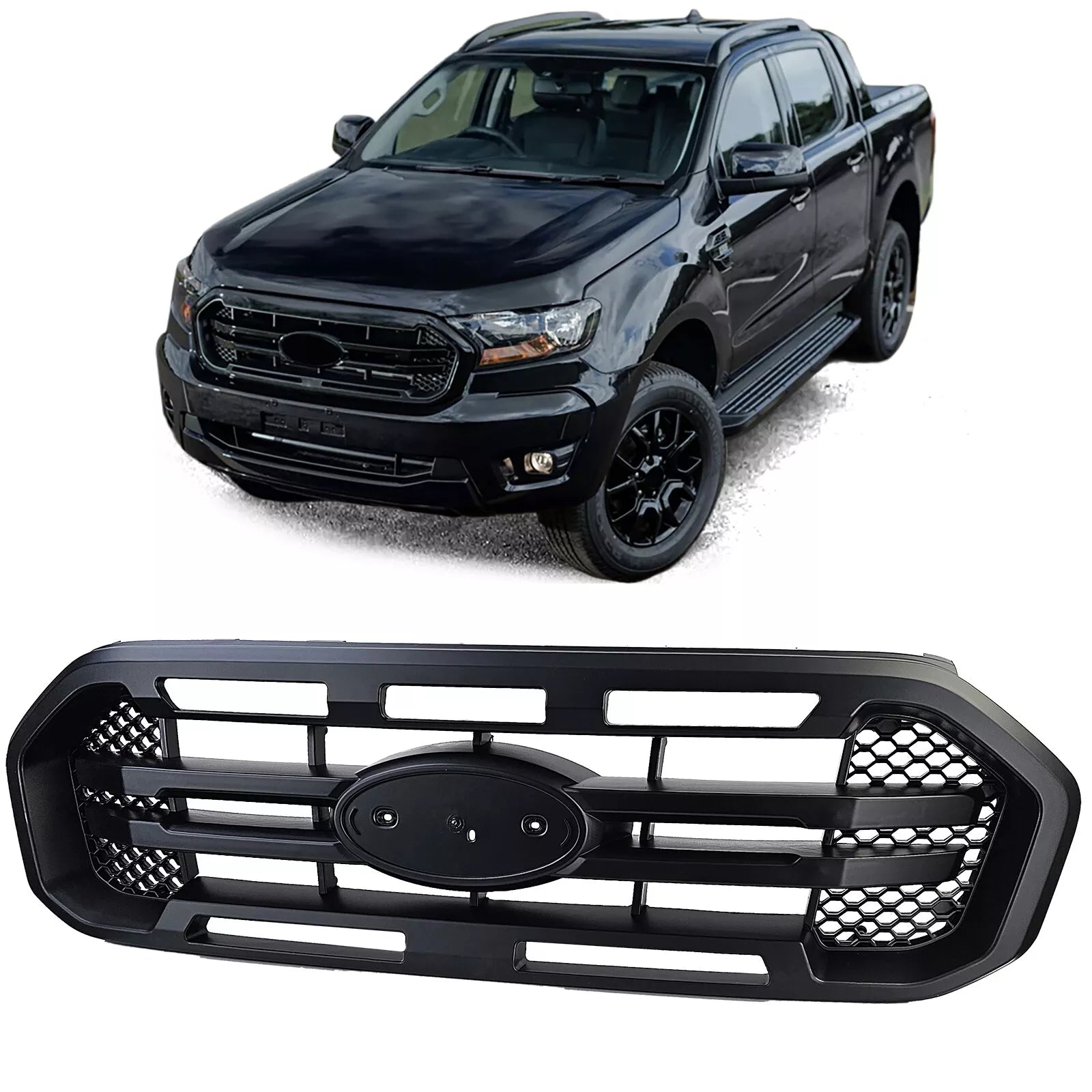 Griglia del radiatore sportivacon design a nido d'apesenza stemma (look pulito)- Look sportivo ed elegante- Facile da sostituire- Massima qualità - Si adatta perfettamente Adatto per: Ford Transit CustomBj. 2018-2023+Ford Tourneo...