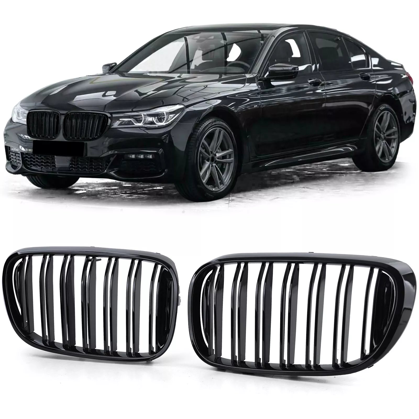 Doppia barra della griglia del radiatore sportivaPerformance nero lucido- Look sportivo ed elegante- Facile da sostituire- Massima qualità- Si adatta perfettamente- Nuovo e imballato originariamente Adatto per: BMW Serie 7Tipo G11 / G12Pre-restylingBj. 7/2015 - 12/2018
