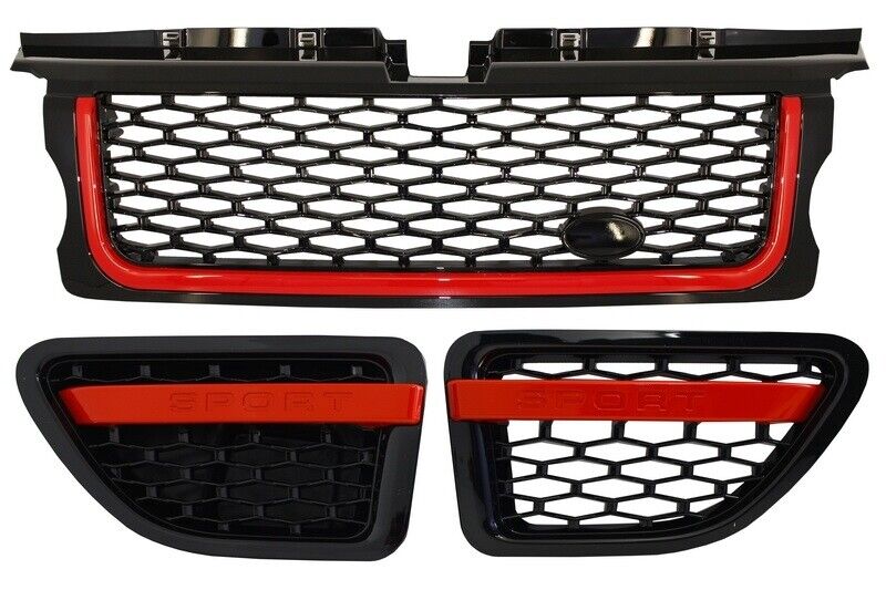 Gruppo griglia centrale e prese d'aria laterali per Land Range Rover Sport L320 (2005-2008) Autobiography Look Black Red Edition