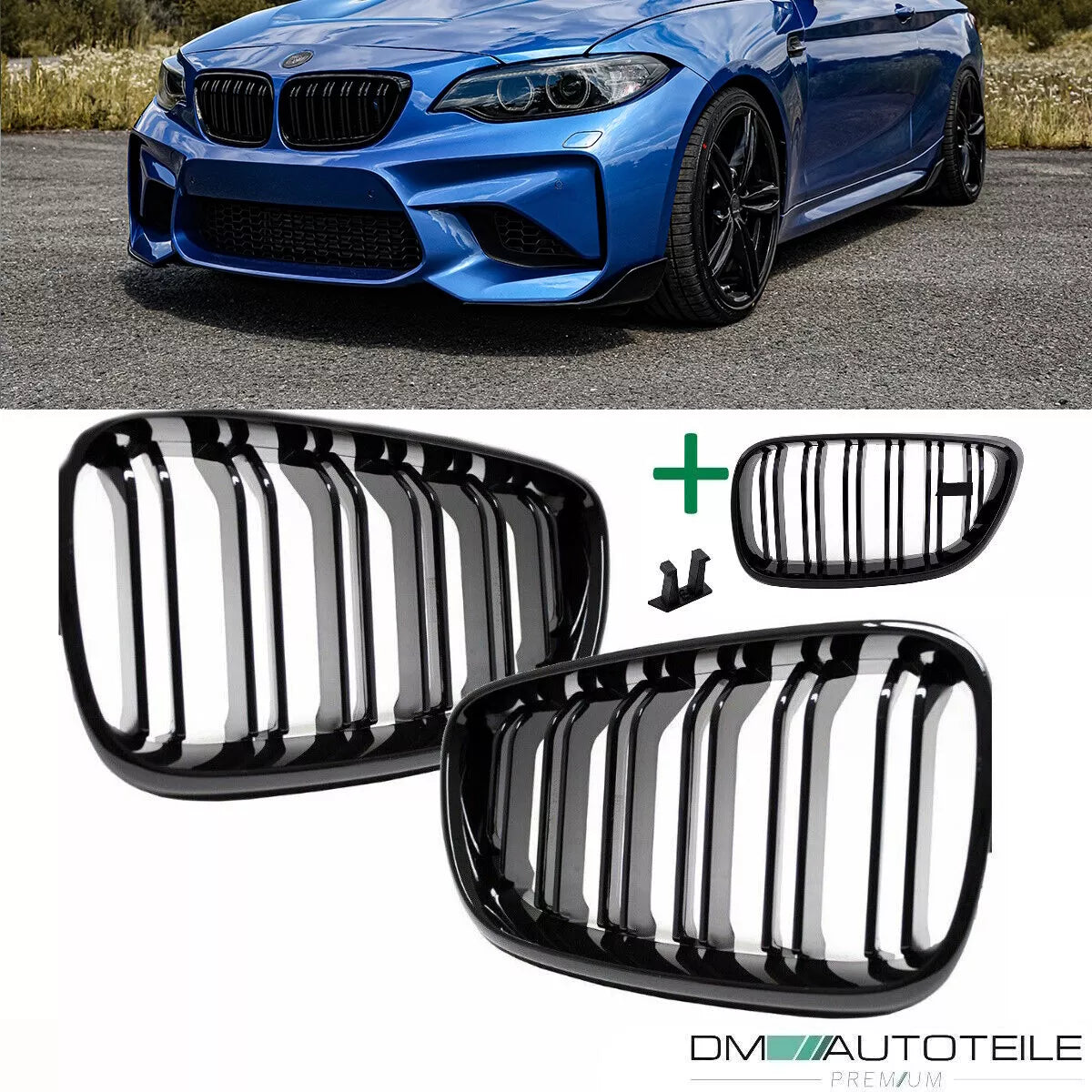 Fornitura: griglia a doppia barra a destra, griglia a doppia barra a sinistra, 1x portaemblema Prodotto da DM Autoteile - l'installazione è stata eseguita con un clic (rimovibile) - emblema corrispondente disponibile solo dal codice OE BMW 51148058881) - disponibile anche nel negozio a un costo aggiuntivo portaemblema con bandiera nazionale abbinata, ad es. Turchia, Germania, Russia e molto altro ancora.